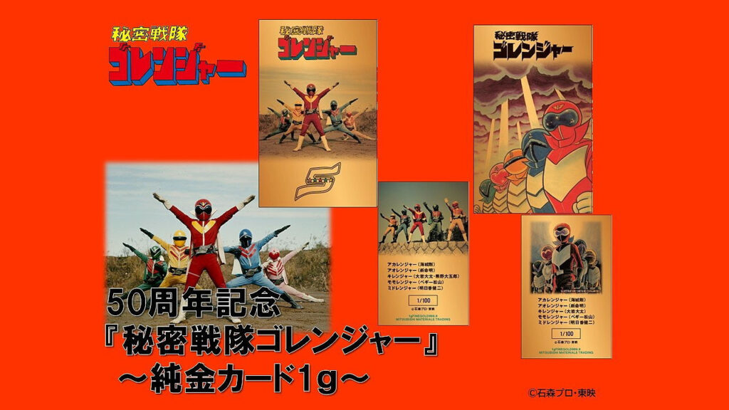A emissora japonesa Nippon Broadcasting lançou um projeto especial para marcar o aniversário de 50 anos de ‘Himitsu Sentai Gorenger’, a série que deu início à icônica franquia dos Super Sentais. A celebração vem em grande estilo: cartões de ouro puro em edição limitada, criados como verdadeiras joias de coleção.