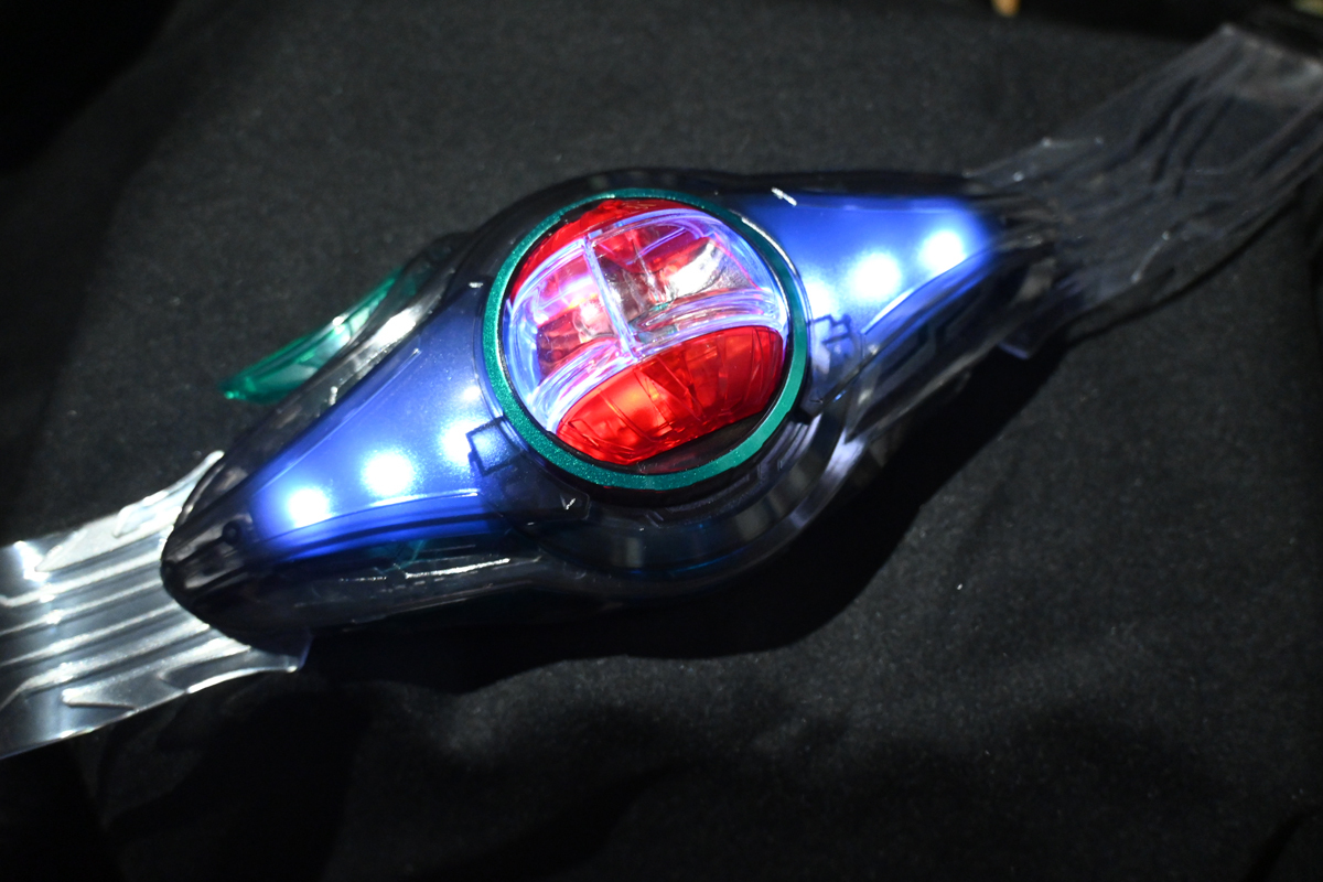 Outro ponto relevante é o material utilizado: a faixa frontal é feita de plástico transparente maleável, o que intensifica os efeitos de luz. Além disso, o cinturão é ajustável, com tamanho que vai de 55 cm a 105 cm, tornando possível que tanto crianças quanto adultos usem o item confortavelmente.