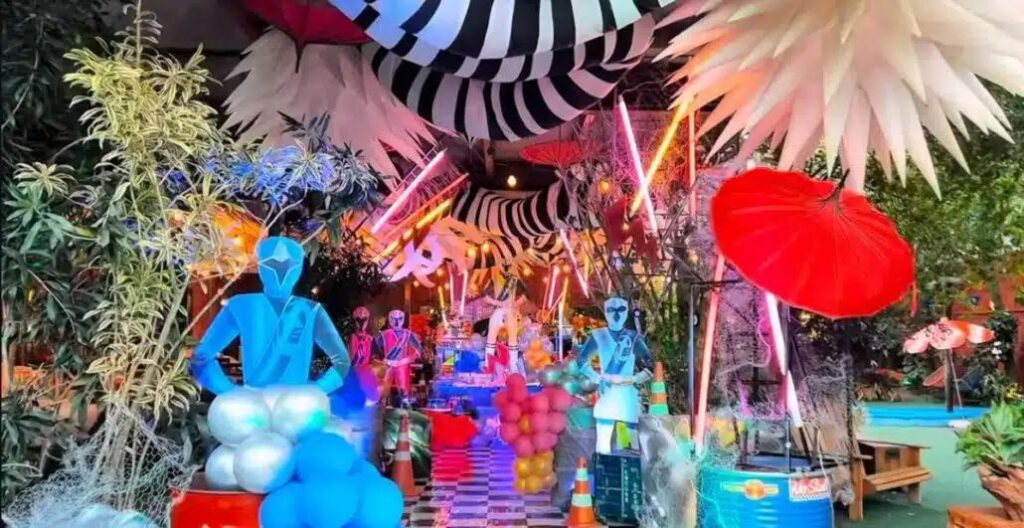 Bonecos em tamanho real dos super-heróis foram espalhados pelo local, compondo uma cenografia colorida e cheia de energia. Balões, doces personalizados e elementos clássicos da série transformaram o ambiente em uma verdadeira aventura, encantando tanto as crianças quanto os adultos.