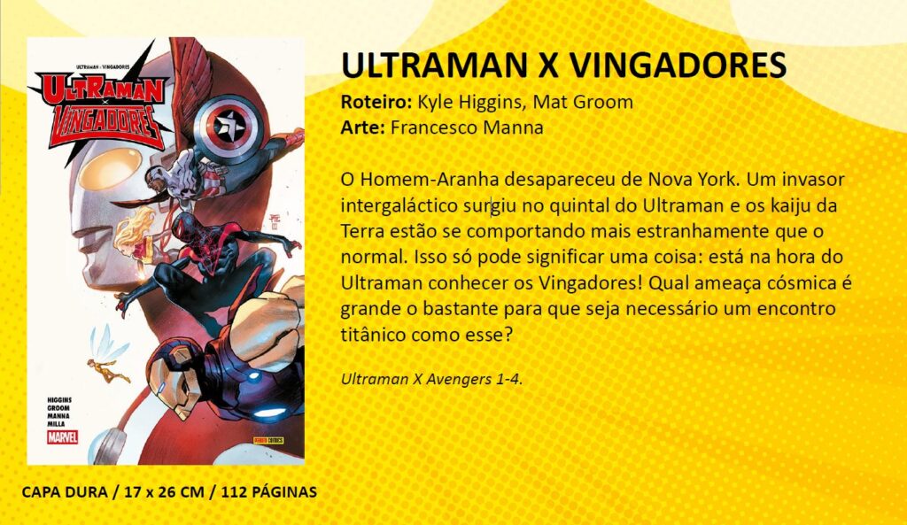 A edição brasileira de Ultraman VS Vingadores será lançada em dezembro de 2025, ao preço de R$ 68,90. O volume terá capa dura e reúne os quatro capítulos que compõem a minissérie completa. A pré-venda já está disponível no site da Panini, oferecendo aos leitores a chance de garantir antecipadamente esse encontro histórico entre lendas dos quadrinhos. Enquanto o momento não chega, confira as outras HQs do Ultraman já lançadas em português!